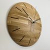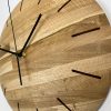 This uniquely designed clock is handcrafted from randomly assorted blocks of solid Oak with thin grooves to indicate the time points. It also features, metal clock hands which have a great contrast with the oak. Finished with natural wax-oil to provide protection but maintain a natural look. This modern clock would be a perfect addition to any room.
