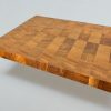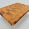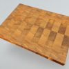 Crafted from iroko hardwood, this exceptional end grain cutting board showcases a striking interplay of colours derived from the natural grain of the wood. The board is meticulously handmade and coated with a food-safe natural wax-oil, enhancing the wood’s inherent grain and colour while ensuring a robust protective layer that prolongs the board’s usability. With its substantial thickness and weight, the board is designed to stay in place during use. Versatile in functionality, both sides of the board are usable.