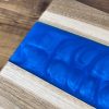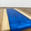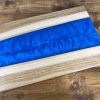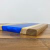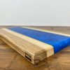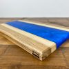 A very unique board made from live edge English Walnut and Deep Blue epoxy resin. This board is one of a kind due to the natural flow pattern of the epoxy being impossible to replicate alongside the live edge Walnut following the natural growth shape of the tree. Finished with a food safe, natural wax-oil to make the natural grain and colour of the wood and epoxy standout whilst providing a tough protective layer to preserve the boards usable life. The board is thick and heavy to prevent it sliding around in use.